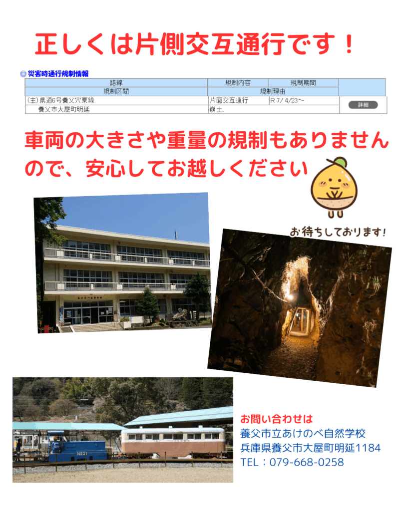 県道6号線に通行止め箇所はありませんので、安心してお越しください。
